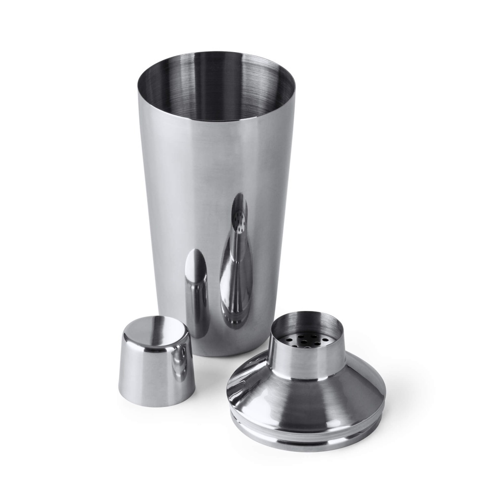 Shaker crafted from stainless steel; features a drip-proof lid and a measuring cup.