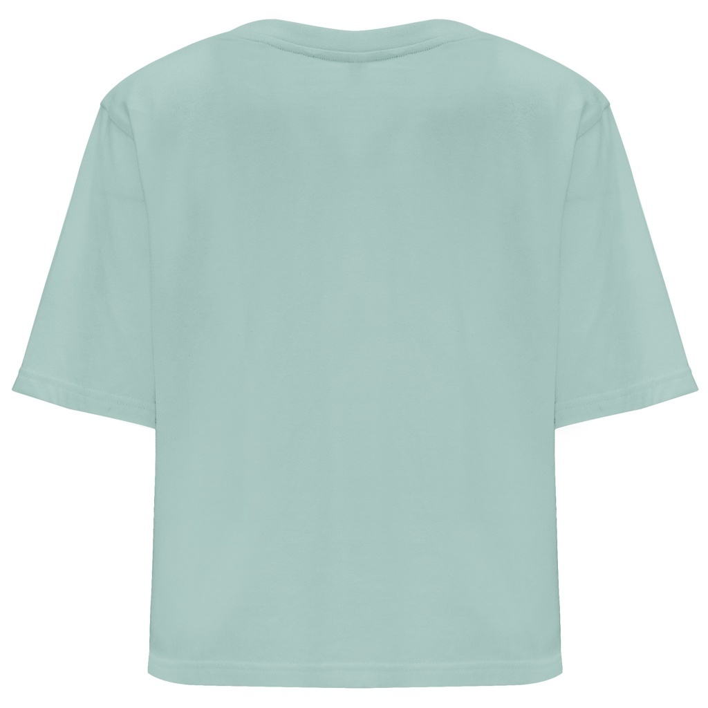 Cropped short-sleeve t-shirt designed for women. Features a crew neck with 1x1 ribbing and a wide 1x1 trim. Reinforced covered seams enhance durability and structure. If you follow current trends, DOMINICA offers a fashionable choice with its contemporary design.