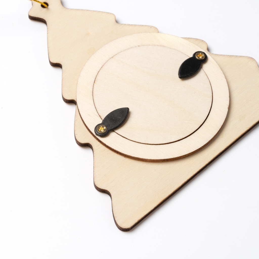 Wooden Christmas photo frame decoration. Photo size: 4,5 cm diameter.