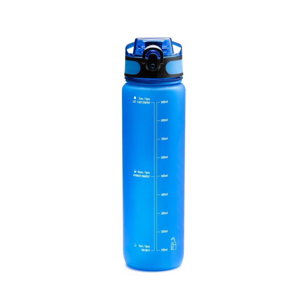 The Tritan bottle features a translucent body and matching cap with a convenient carrying handle. It displays hydration guidance and a capacity indicator to help you monitor fluid intake. Designed to blend practicality with modern style.