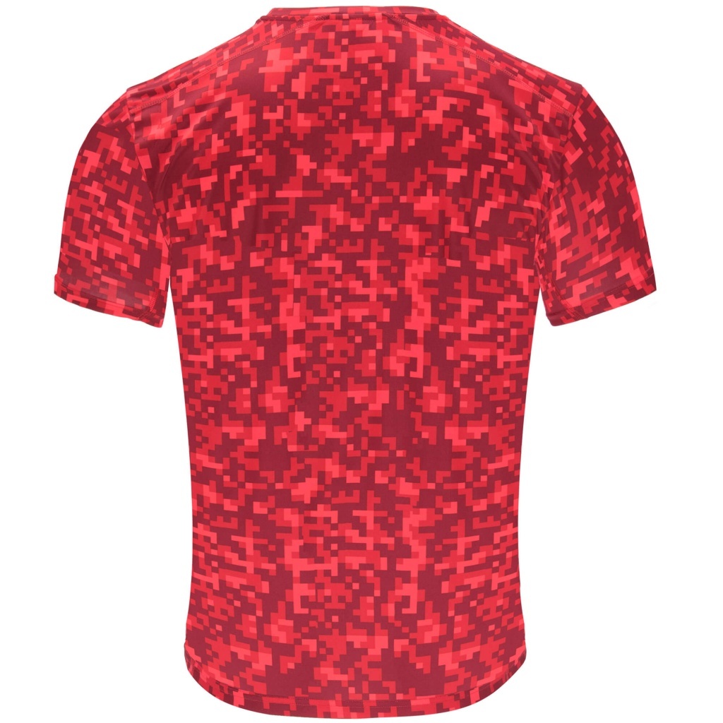 Short-sleeve printed technical shirt featuring a crew neck with reinforced covered seams in contrast fluor yellow. Side panels on the inside of the sleeve and on the shoulders are finished with tone overlock.