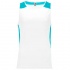 Lightweight technical tank top featuring reflective accents. Round neck with reinforced covered seams. Constructed from two polyester fabrics in three colours. Main body in interlock fabric, side and upper panels in microperforated fabric to enhance breathability. Fast-drying.