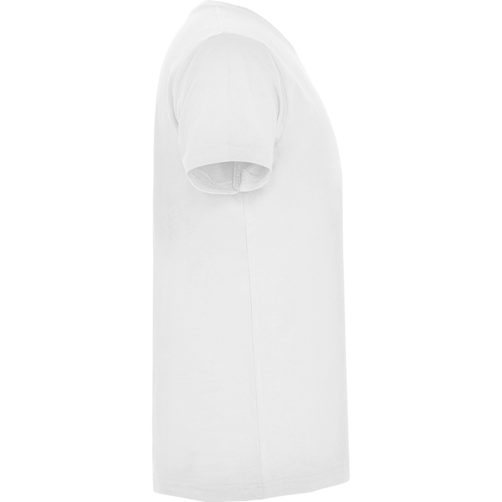 Short sleeve V-neck t-shirt, 4 layer neck. Reinforced covered seams in collar and shoulders, side seams.
