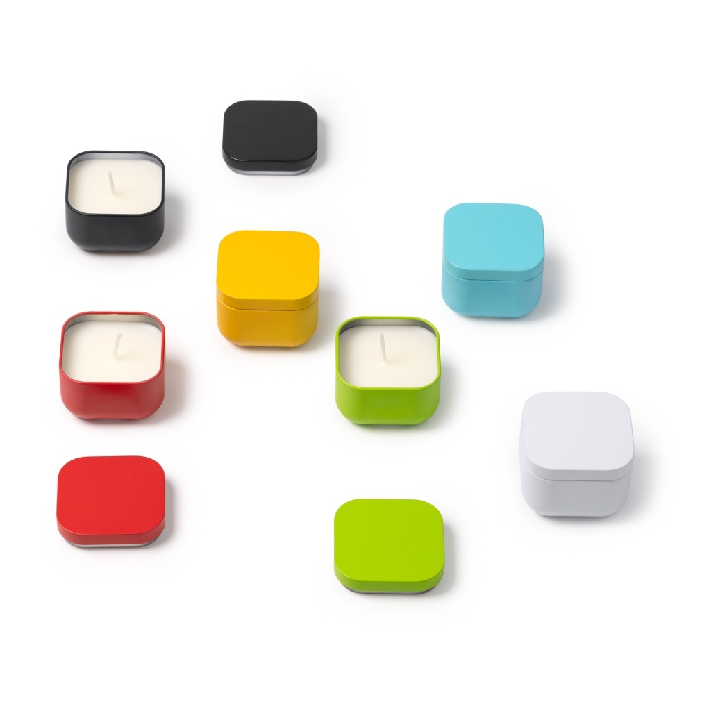 • Trini - Aromatic candle with a square metal bowl. Vegetable wax with the aroma of lavender.