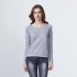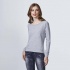 Bluza damska z raglanowymi długimi rękawami i zaokrąglonym dekoltem wykończonym lamówką 1x1. Ozdobne przeszycie pod szyją oraz szerokie mankiety i pas wykończone lamówką 1x1.