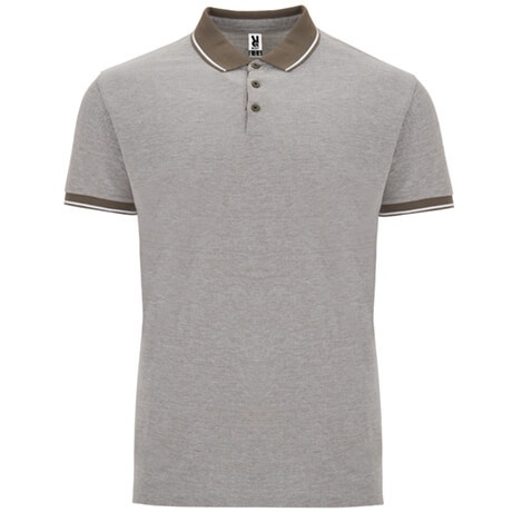 Polo Vigore z krótkim rękawem. Dekolt w jednolitym kolorze z kontrastowym, dekoracyjnym akcentem. Wewnętrzna część plisy wykończona kontrastową ozdobną taśmą i trzema guzikami. Prążkowane mankiety z kontrastowymi detalami. Boczne rozcięcia ozdobione taśmą. Tył jest nieco dłuższy niż przód.
