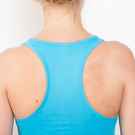 Dopasowany damski top z lamówką wykończającą dekolt i ramiona. Tył w stylu pływackim oraz szwy boczne zapewniające lepsze dopasowanie.