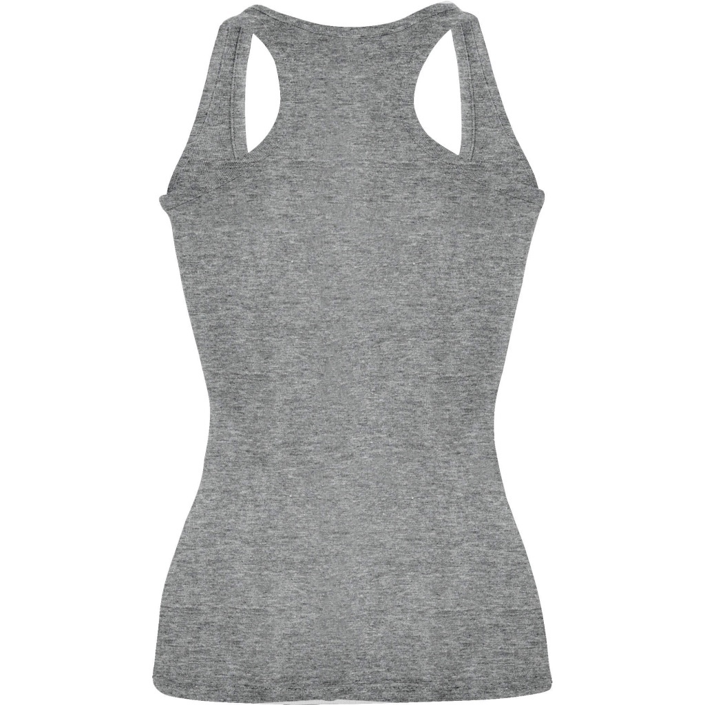 Dopasowany damski top. Dekolt i ramiona wykończone lamówką. Tył w stylu pływackim. Szwy boczne.