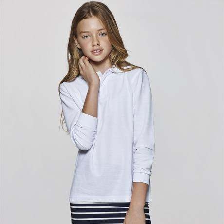Dziecięce polo z długim rękawem. Zapięcie z dwoma guzikami. Prążkowany kołnierzyk i mankiety. Wzmocnione, kryte szwy przy kołnierzyku. Elastyczne ściągacze przy mankietach.