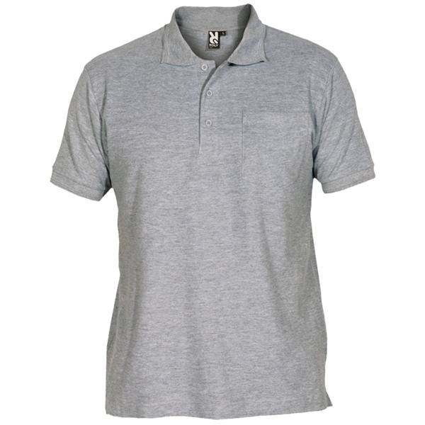 Koszulka polo z krótkim rękawem oraz kieszonką na piersi. Zapięcie na trzy guziki. Kołnierzyk i mankiety prążkowane. Wzmocnione, kryte szwy przy kołnierzyku.