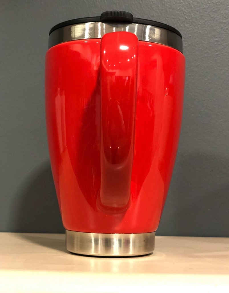 Kubek termiczny z podwójną ścianką, ceramiczno-stalowy.