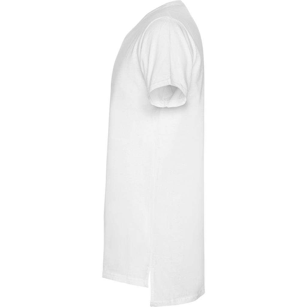 Koszulka z krótkim rękawem i przedłużanym tyłem, dekolt wykończony dwiema warstwami tkaniny z dodatkiem elastanu. Boczne rozcięcia u dołu koszulki.
