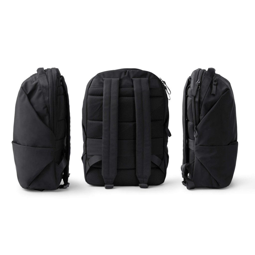 Plecak zrobiony z poliestru 150D. W głównej komorze znajduje się podwójna kieszeń z wyściełaną przegrodą mieszczącą laptop do 17 cali oraz dodatkowa mniejsza kieszeń zapinana na zamek. Z przodu znajduje się zewnętrzna kieszeń z ukrytym zamkiem do drobnych rzeczy. Po bokach umieszczono dwie głębokie, niewidoczne kieszenie — jedna z nich zamykana na zamek. W komplecie pasek do wózka. Plecak wyposażono w wyściełane szelki i oparcie dla zwiększenia komfortu. Dzięki zastosowanej tkaninie jest wyjątkowo trwały i uniwersalny pod względem rozmieszczenia kieszeni.