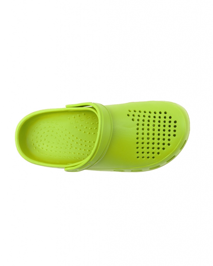 Bardzo wygodne chodaki wyposażone w otwory wentylacyjne. Pasek zaciskowy można ustawić w dwóch pozycjach. Podeszwa zapewnia ochronę antypoślizgową.