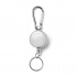 Rozciągany przewód zakończony karabińczykiem z kółeczkiem — idealny do mocowania Ski Pass.