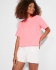 Koszulka z krótkim rękawem o luźnym kroju. Okrągły, prążkowany dekolt. Wzmocnione, kryte szwy w tym samym kolorze.