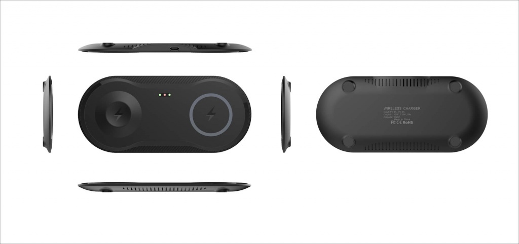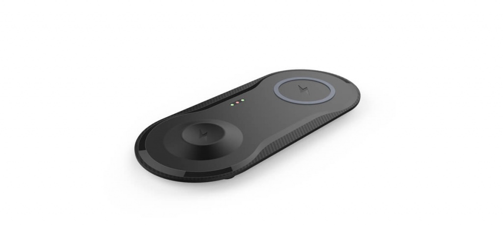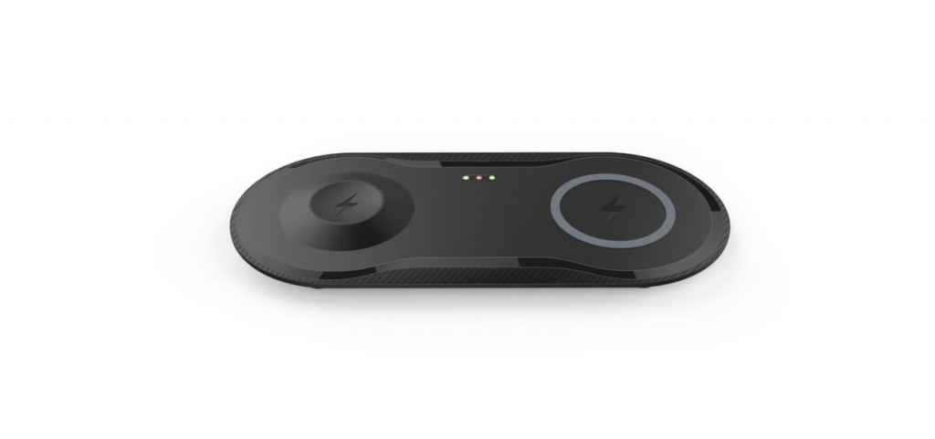 Bezprzewodowa ładowarka (indukcyjna) o mocy 10W, przeznaczona dla 2 urządzeń — telefonu i zegarka Apple Watch.