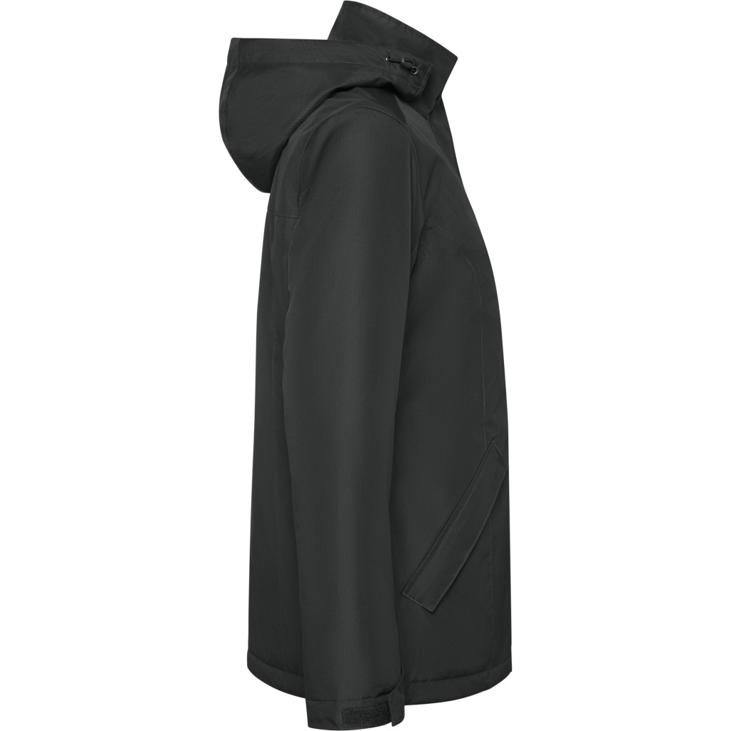 Damska wodoodporna kurtka typu parka z pikowaną podszewką, zaprojektowana z myślą o ochronie przed wiatrem i deszczem. Posiada wysoki kołnierz ze zwijanym kapturem z kieszenią na kaptur zapinaną na rzep, zamek dopasowany kolorem do klapy oraz boczne kieszenie kryte klapami i zamkami. W środku znajduje się wewnętrzna kieszeń zapinana na rzep, regulowane mankiety na rzep oraz wewnętrzny dostęp do wzmocnień na plecach i lewej piersi.