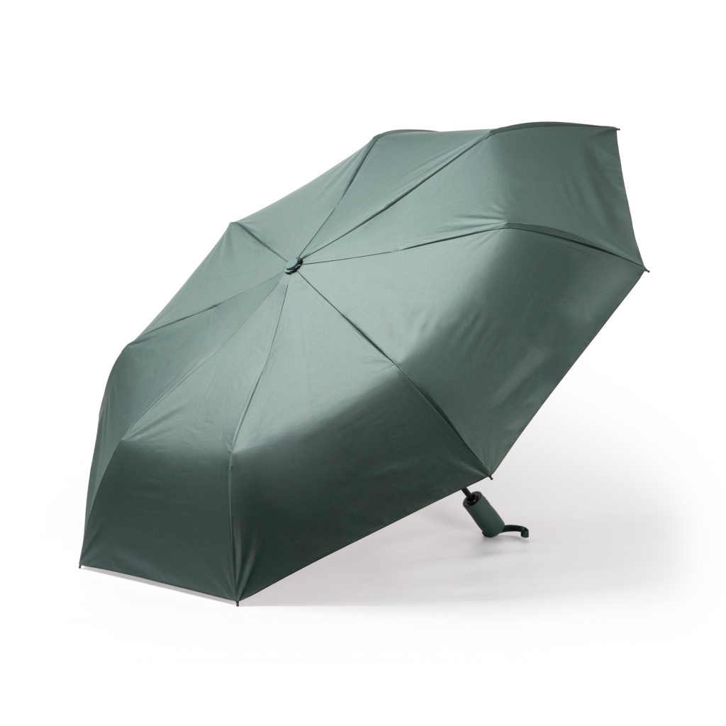 Składany parasol wykonany z tkaniny RPET z ochroną przed promieniowaniem UV. Mechanizm automatycznego otwierania i zamykania. Materiał pongee 190T ze wskaźnikiem ochrony SPF50. Stelaż z prętów z włókna szklanego. Odporność na śnieg i wodoodporność. Zapięcie na rzep. Do zestawu dołączone pasujące etui.