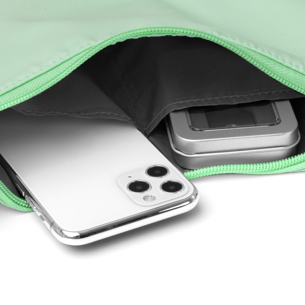 Praktyczna torba na ramię z wodoodpornego nylonu z recyklingu, wyposażona w przestronną komorę główną i dwie kieszenie wewnętrzne, zapewniająca komfortowe i bezpieczne przenoszenie przedmiotów na co dzień, łącząca funkcjonalność ze zrównoważonym podejściem.