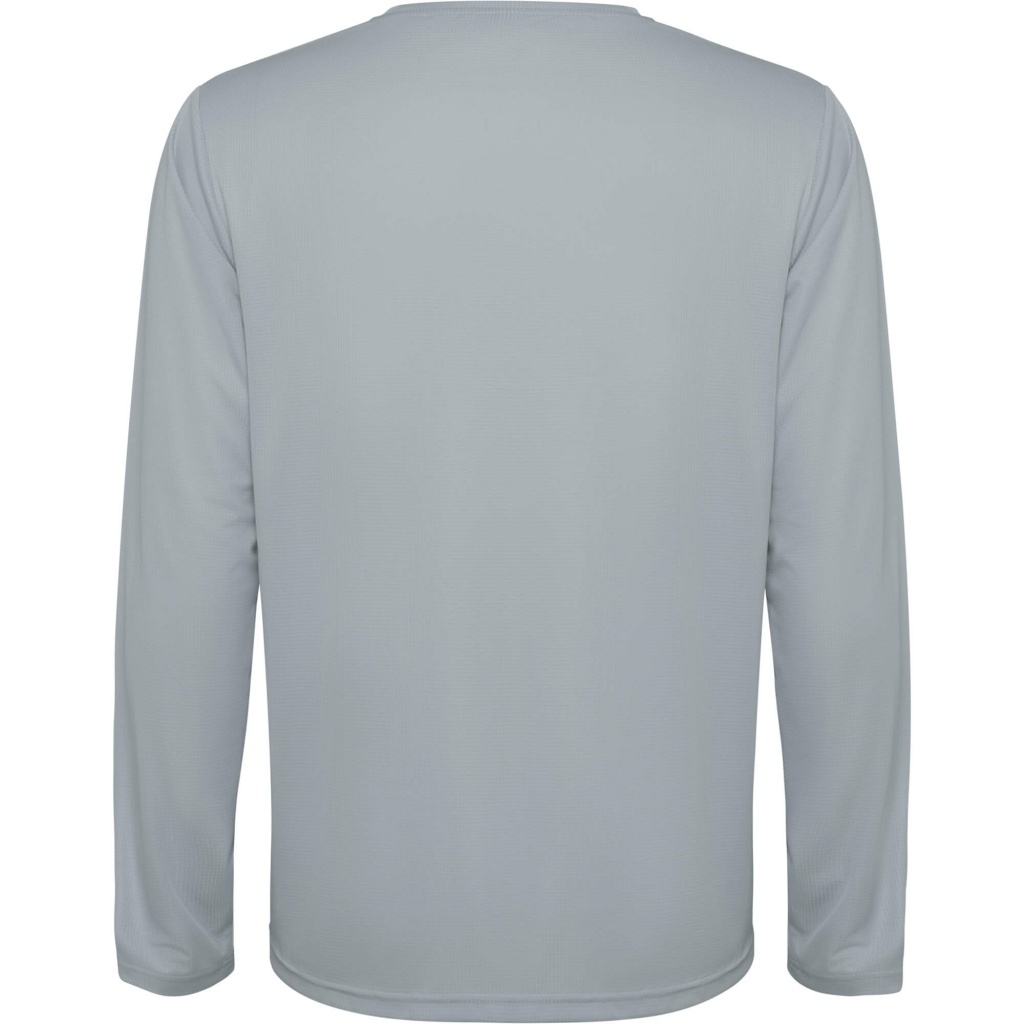 Uniseksowa koszulka techniczna z długimi rękawami. Szycia w kołnierzu pokryte materiałem w tym samym kolorze. Tył koszulki jest nieznacznie dłuższy od przodu. Boczne szwy przesunięte ku przodowi.