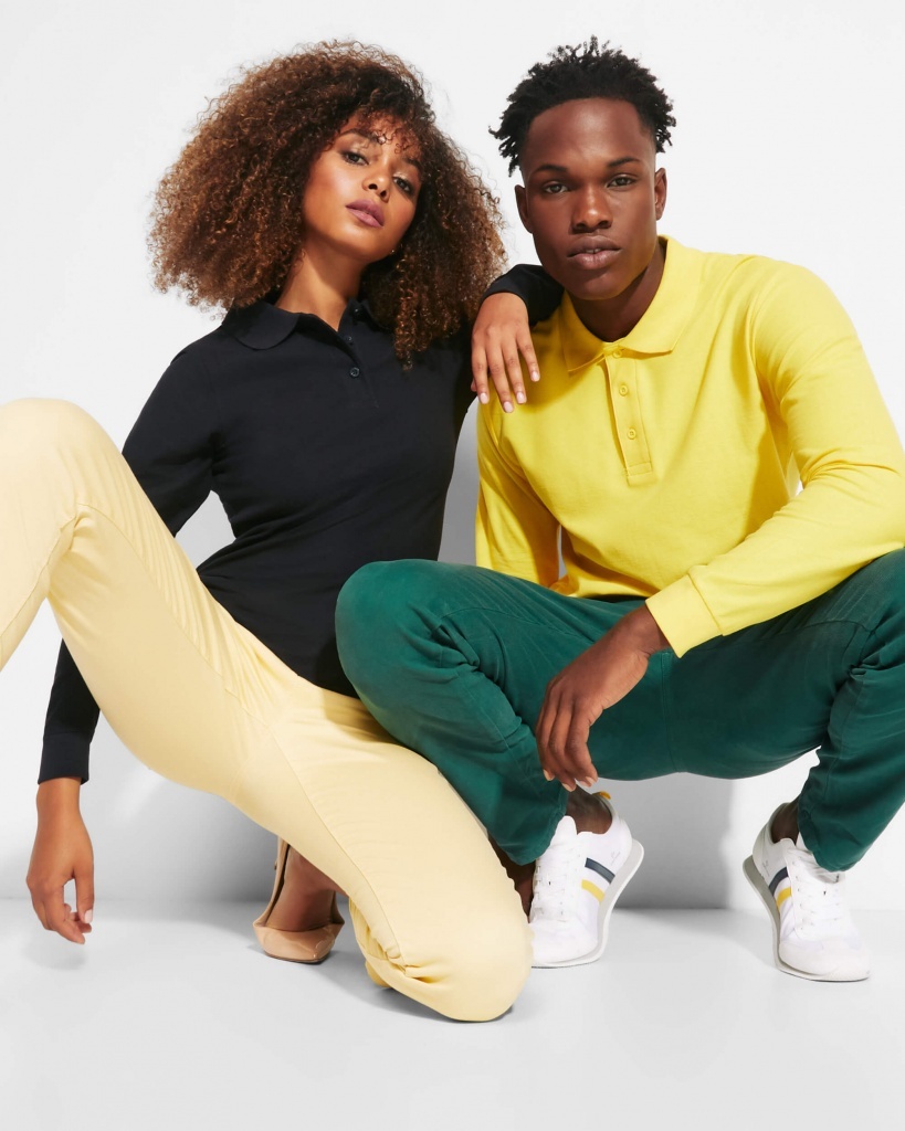 Damska koszulka polo ESTRELLA LONG SLEEVE WOMAN zaprojektowana zarówno do działań promocyjnych, jak i jako odzież sportowa oraz robocza.