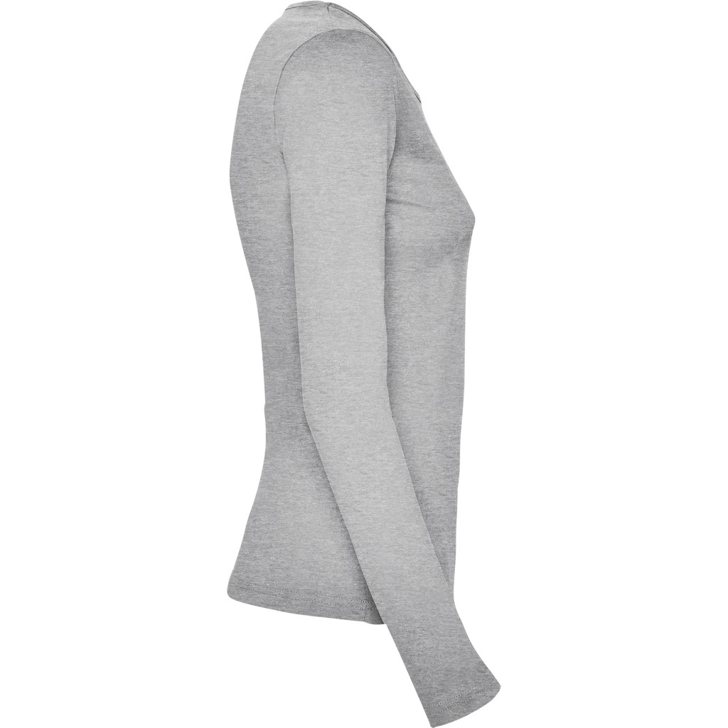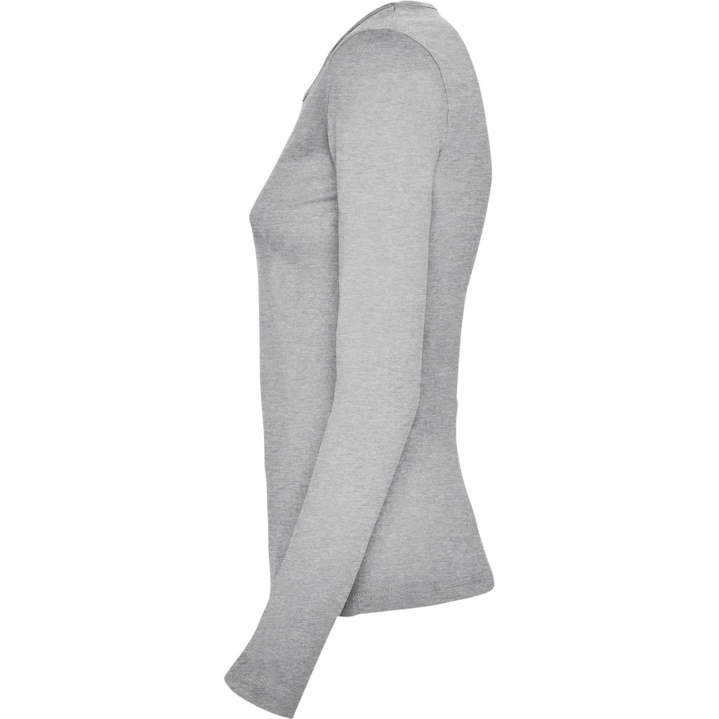 Damska koszulka z długim rękawem o dopasowanym kroju. Bez mankietów. Posiada szwy boczne.