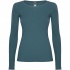 Damska koszulka z długim rękawem o dopasowanym kroju. Bez mankietów. Posiada szwy boczne.