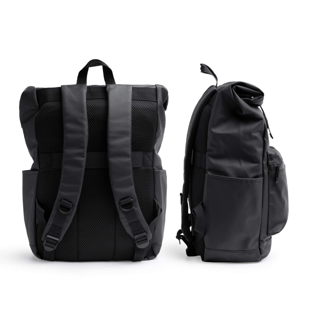 Wielofunkcyjny plecak z wysokiej jakości skóry PU. Pojemna komora główna z bocznymi zapięciami na rzep oraz dodatkowym zapięciem zabezpieczającym. Wewnątrz znajduje się wyściełana kieszeń na laptopa 18". Zewnętrzna kieszeń wodoodporna zapinana na zamek oraz dwie praktyczne kieszenie boczne. Wyposażony w pasek mocujący dla większej wygody użytkowania.