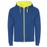 Rozpinana bluza z fluorescencyjnymi akcentami. Kaptur ma podszewkę z mikro perforowanej tkaniny poliestrowej w kontrastującym fluorescencyjnym kolorze. Sznurek i metalowe oczka również w fluorescencyjnym kolorze. Prążkowane mankiety i dół bluzy 1x1.