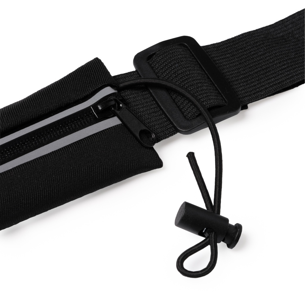 Pas do biegania / mała nerka z poliestru i spandeksu. Kieszeń wyposażona w odblaskową taśmę oraz wodoodporne zapięcie na zamek. W komplecie znajduje się gumka.