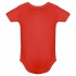 Body z krótkim rękawem dla niemowląt, tkanina single jersey. Okrągły dekolt wykończony lamówką 1x1. Zapięcie w kroku na zatrzaski.