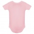 Body z krótkim rękawem dla niemowląt, tkanina single jersey. Okrągły dekolt wykończony lamówką 1x1. Zapięcie w kroku na zatrzaski.