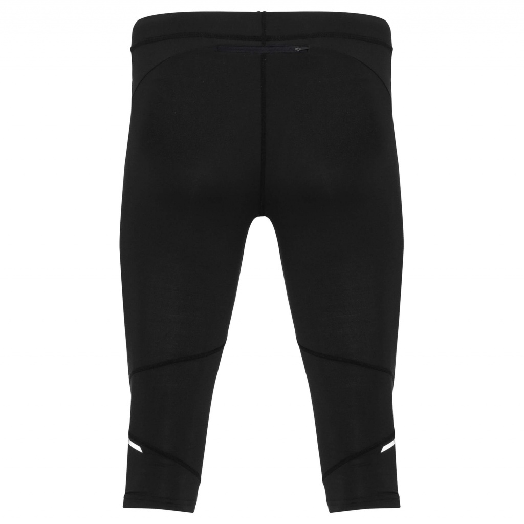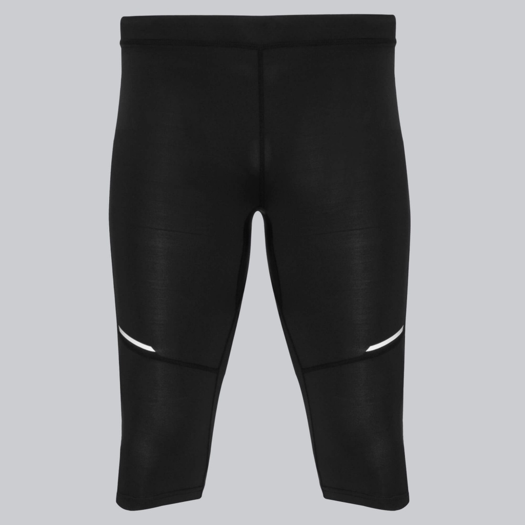 Legginsy męskie, długość nogawek do kolan. Elastyczny ściągacz w pasie z regulowanym sznurkiem. Elementy odblaskowe. Tylna kieszeń zapinana na zamek.