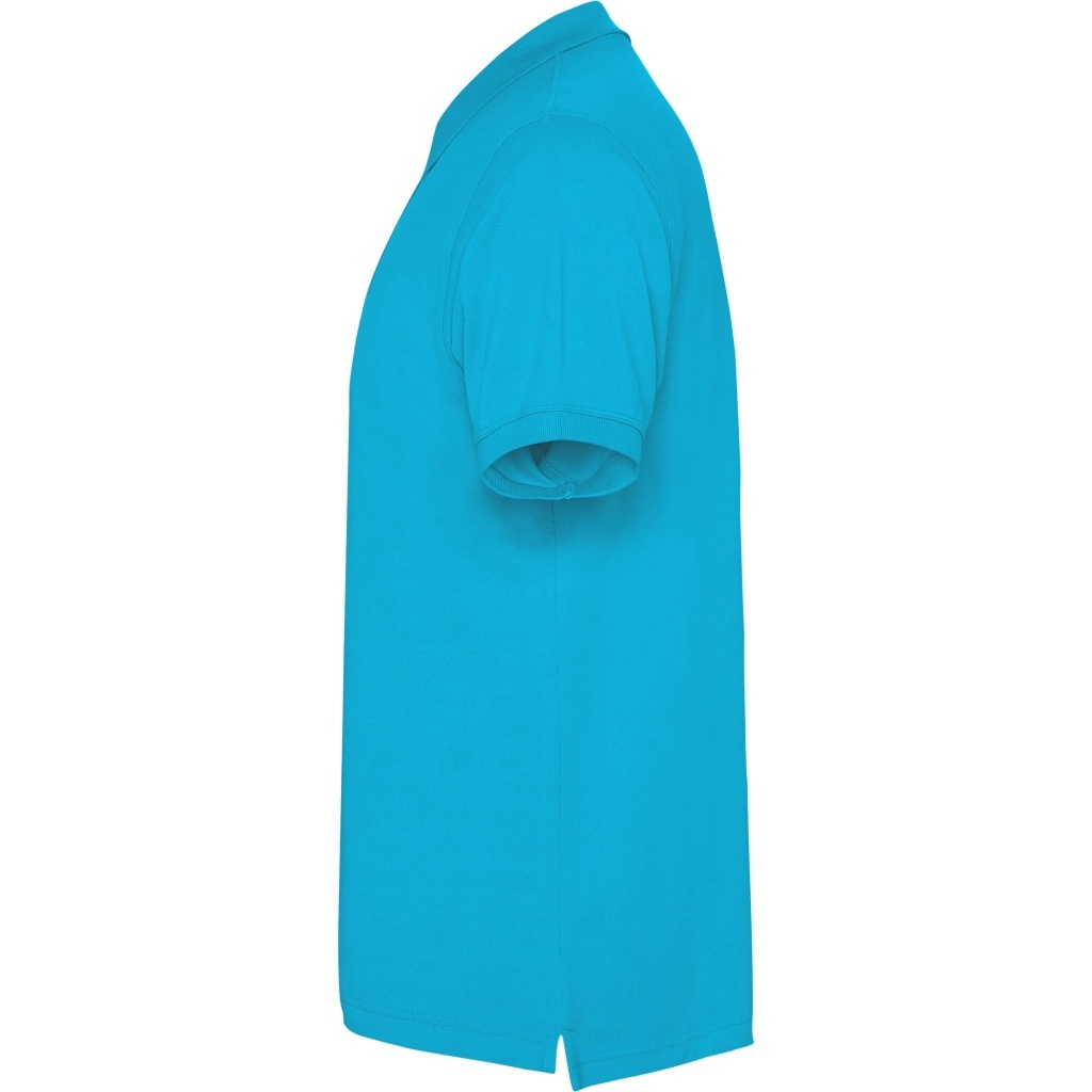 Model z krótkim rękawem o wysokiej jakości wykonania. Kołnierz zapinany na trzy guziki w kolorze koszulki. Kołnierzyk i mankiety prążkowane 1x1. Wzmocnione, kryte szwy przy kołnierzu. Boczne rozcięcia z krytymi szwami. Dłuższy tył dla lepszego dopasowania. Podwójne przeszycia na ramionach, rękawach oraz u dołu koszulki.