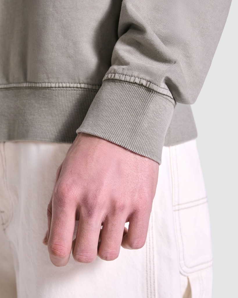 Unisexowa bluza z okrągłym dekoltem, wykonana w 100% z bawełny Terry (acid-wash). Kołnierz, mankiety oraz dół wykończone prążkowanym ściągaczem 2x1 w tym samym kolorze. Szwy przy mankietach, u dołu, w pasie i pod pachami zostały wzmocnione. Ściągacz przy szyi dopasowany kolorystycznie do bluzy.