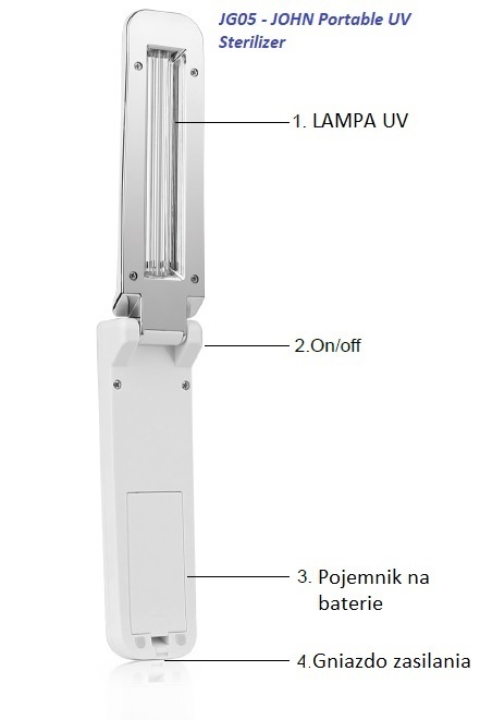 1- Przytrzymaj włącznik przez 3 sekundy, lampa UV uruchomi się (lampa UV świeci tylko jeśli jest skierowana w dół; skierowana do góry wyłącza się automatycznie).
