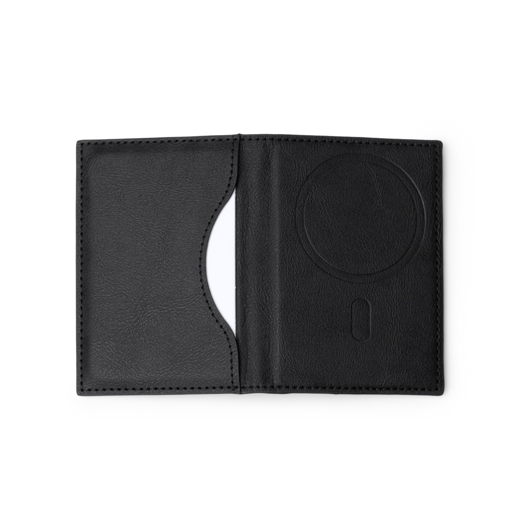 Składany, magnetyczny uchwyt na karty — praktyczne akcesorium do noszenia najważniejszych kart wraz z telefonem dzięki wbudowanemu systemowi magnetycznemu. Wyposażony w trzy wewnętrzne oraz jedną zewnętrzną przegrodę na karty.