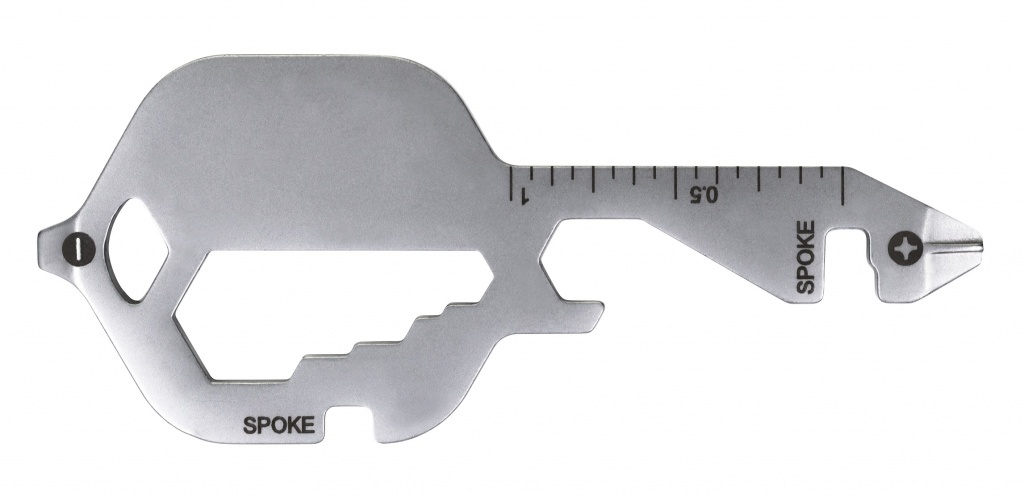 Wielofunkcyjne narzędzie ze stali nierdzewnej, skonstruowane w formie klucza.