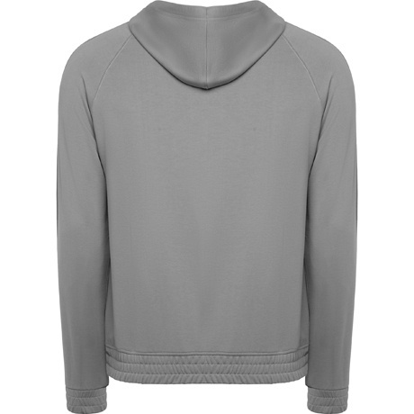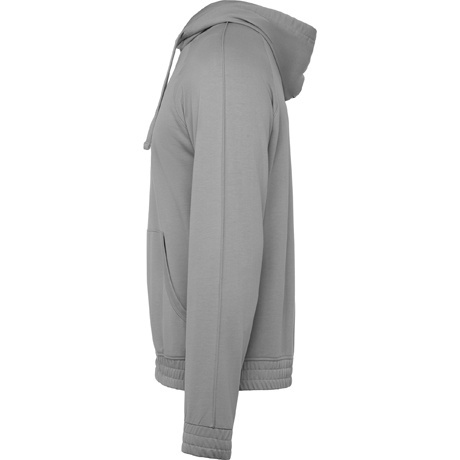 Uniwersalna bluza z kapturem w kroju unisex. Model typu kangurka z praktyczną kieszenią na brzuchu. Gładkie sznurki wyposażone w haftowane oczka. Brzegi bluzy przy pasie i rękawach wykonane z tego samego materiału. Na rękawach widoczny wypukły szew.