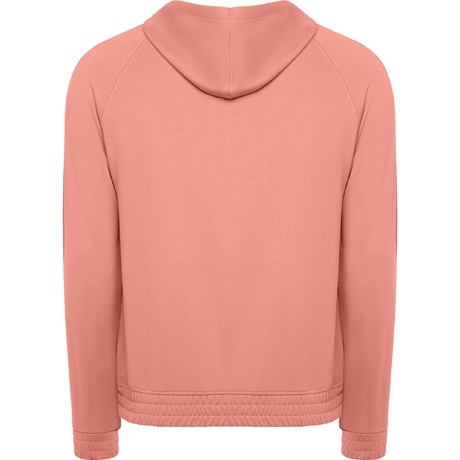 Uniwersalna bluza z kapturem w kroju unisex. Model typu kangurka z praktyczną kieszenią na brzuchu. Gładkie sznurki wyposażone w haftowane oczka. Brzegi bluzy przy pasie i rękawach wykonane z tego samego materiału. Na rękawach widoczny wypukły szew.