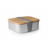Lunch box wykonany ze stali nierdzewnej 304 z bambusową pokrywką i paskiem ściągającym z poliestru.