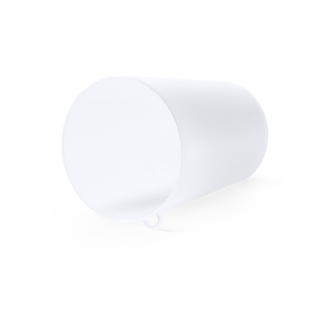 Elastyczny kubek z polipropylenu o pojemności 500 ml, przeznaczony do wielokrotnego użytku, wyposażony w praktyczny pierścień. Półprzezroczyste wykończenie.
