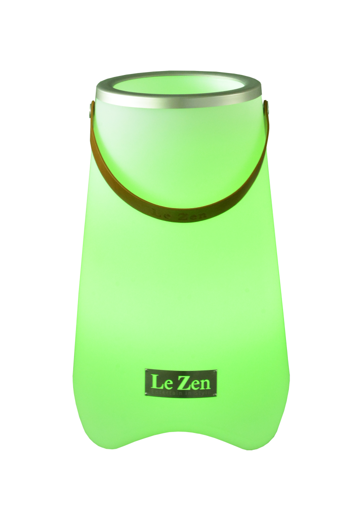 Le Zen to wielofunkcyjne urządzenie łączące kolorową lampę LED, głośnik Bluetooth oraz chłodziarkę do wina (lub doniczkę na rośliny). Model Le Zen M pomieści do 2 standardowych butelek wina, szampana lub likieru i wyposażony jest w głośnik Bluetooth o mocy 10 W. Urządzenie oferuje nastrojowe oświetlenie w 7 kolorach oraz 3 tryby efektów: migające, zanikające i synchronizowane z muzyką. W zestawie znajduje się bezprzewodowy pilot zdalnego sterowania. Stopień ochrony IP44, a polimerowa bateria litowo-jonowa 4000 mAh zapewnia do 5 godzin odtwarzania. Le Zen jest wodoodporny, odporny na wstrząsy, bezprzewodowy i łatwy do przenoszenia — idealny na imprezy, rejsy, pikniki, ogniska na plaży oraz jako elegancka dekoracja do domu czy baru.