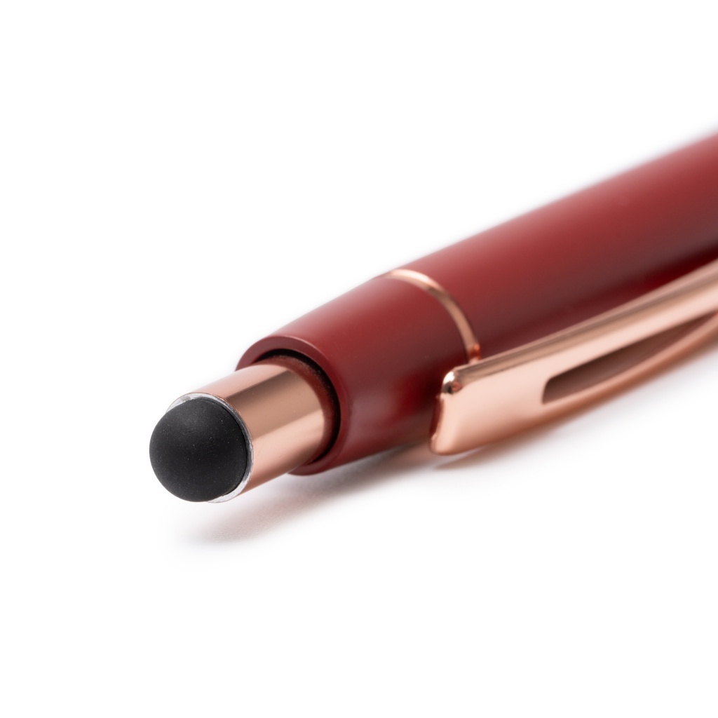 Długopis z mechanizmem wciskanym, metalowym, matowym korpusem oraz miedzianymi elementami. Na przycisku umieszczony wskaźnik dotykowy. Wkład atramentowy Jumbo w kolorze niebieskim.