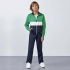 5. Spodnie z elastycznym pasem regulowanym ściągaczem, dwie boczne kieszenie wykończone lamówką.