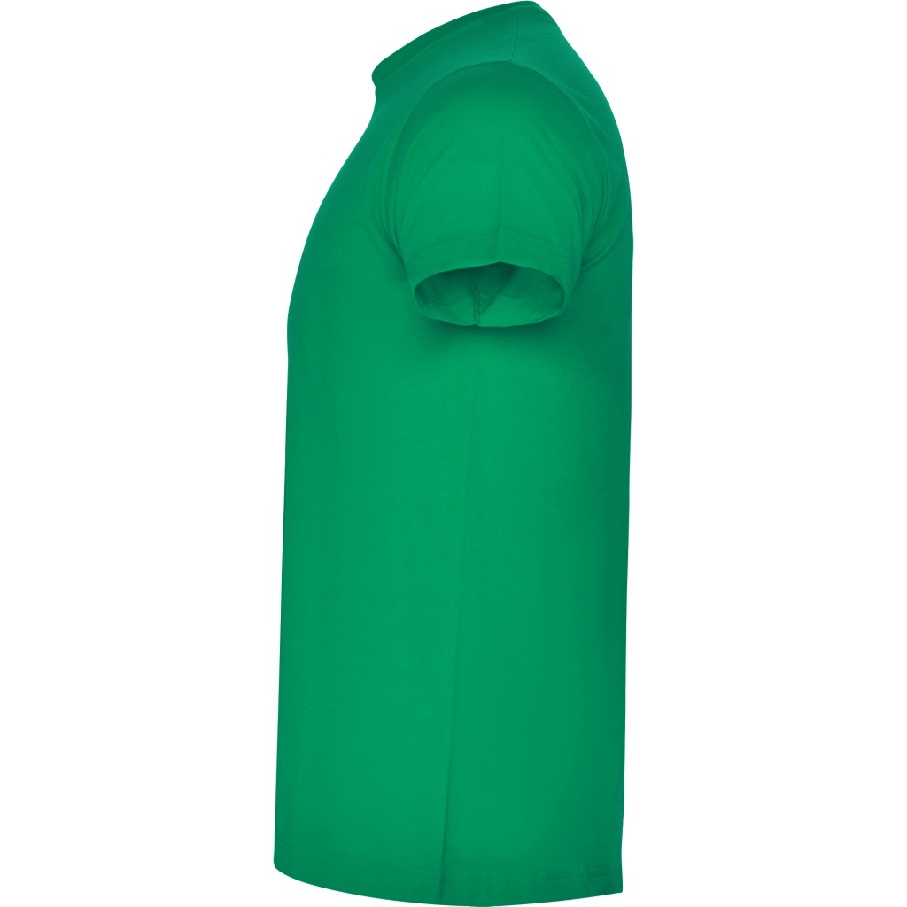 T-shirt z krótkim rękawem, podwójny karczek. Wzmacniane, kryte szwy na karku i ramionach. Brak szwów bocznych. Zaokrąglony ściągacz przy szyi.