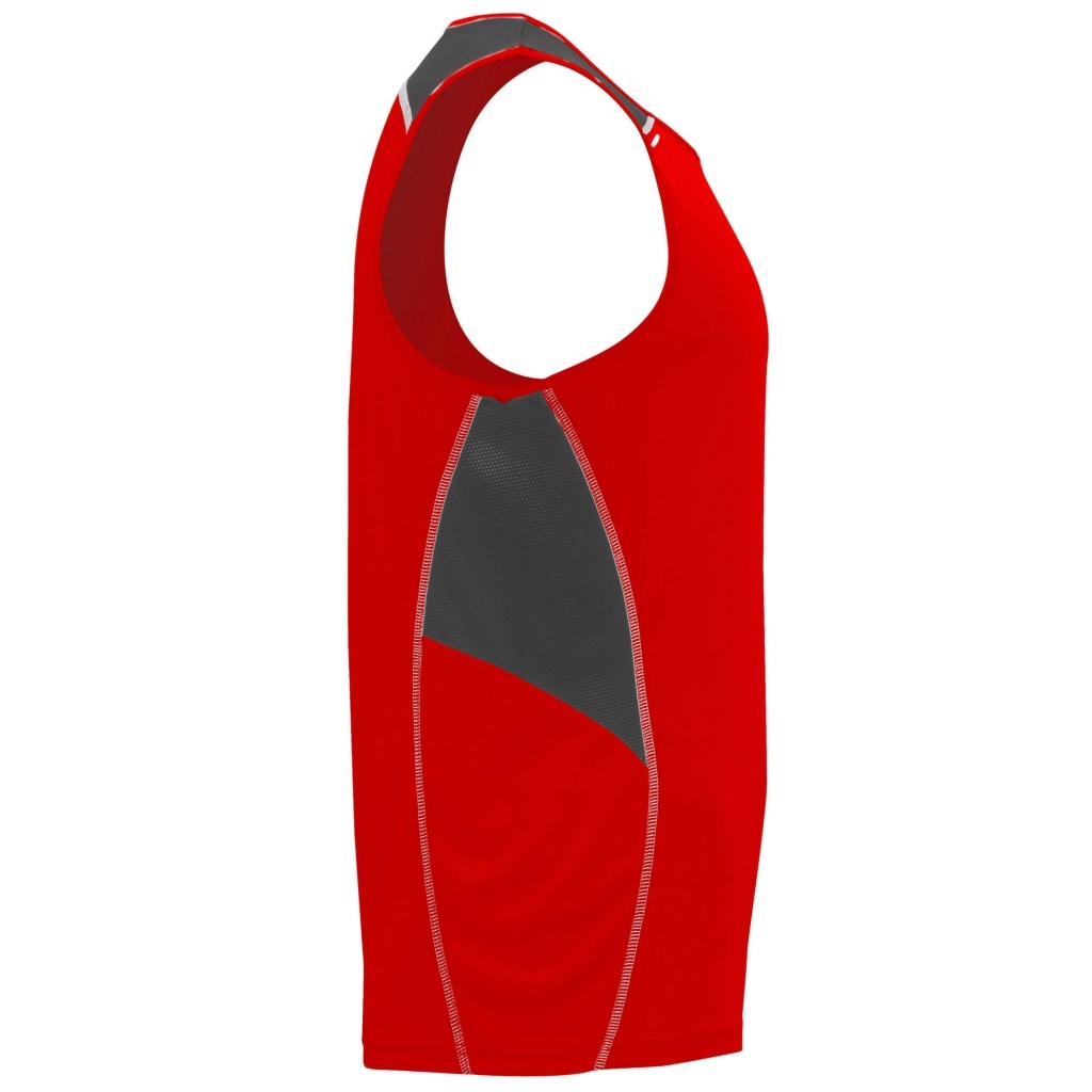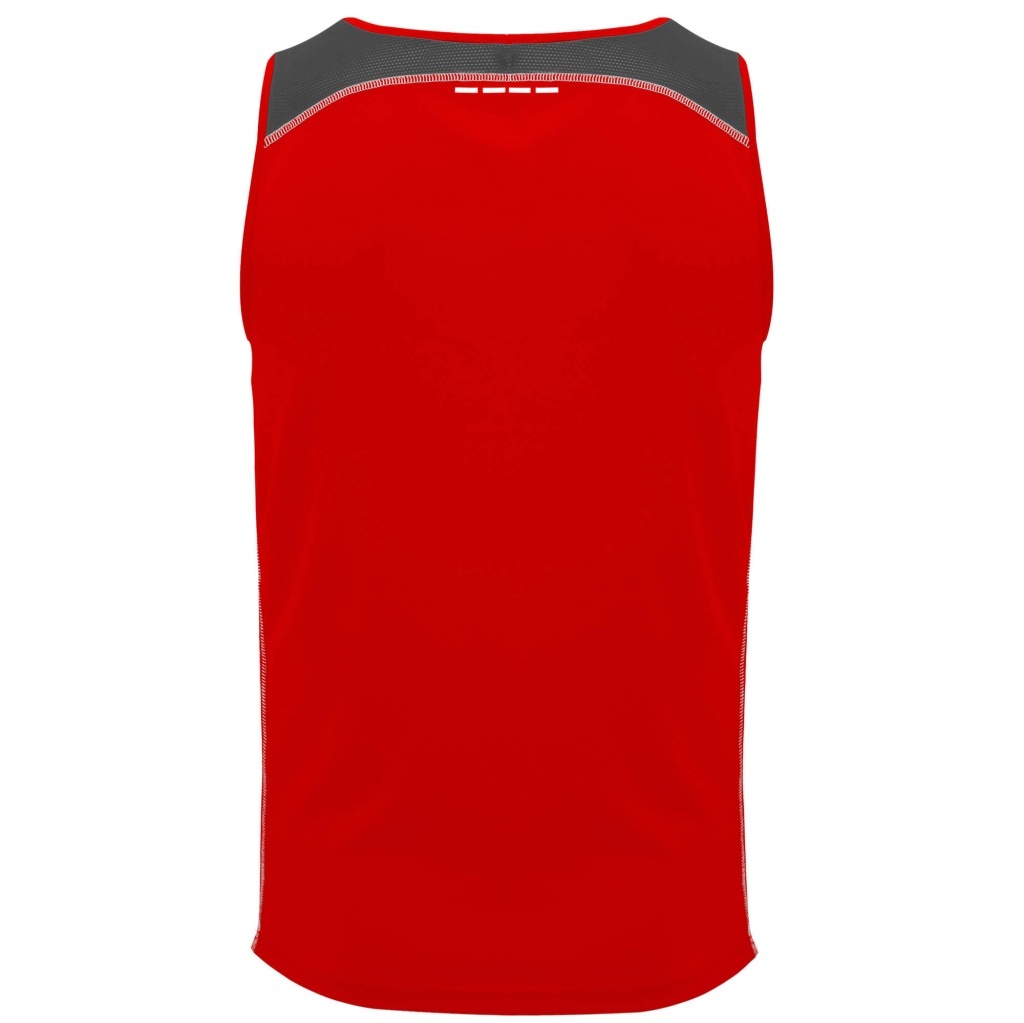 Koszulka techniczna na ramiączka wzbogacona o elementy odblaskowe. Posiada okrągły kołnierzyk oraz wzmocnione, kryte szwy na karku. Trójkolorowy model wykonany z dwóch materiałów poliestrowych: główna tkanina interlock oraz boczne i górne panele z mikroperforowanej tkaniny. Model szybkoschnący i łatwy w pielęgnacji.