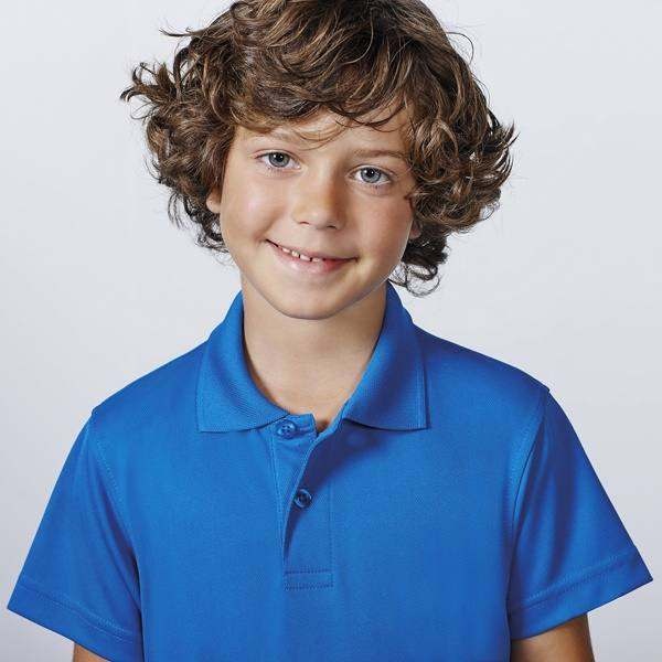 Poliestrowa koszulka polo z krótkim rękawem. Dzianinowy kołnierzyk z zapięciem na trzy guziki. Oddychająca tkanina, łatwa w praniu i szybkoschnąca.