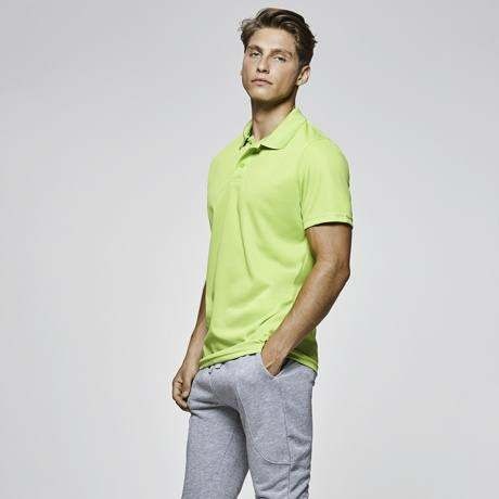Poliestrowa koszulka polo z krótkim rękawem. Dzianinowy kołnierzyk z zapięciem na trzy guziki. Oddychająca tkanina, łatwa w praniu i szybkoschnąca.